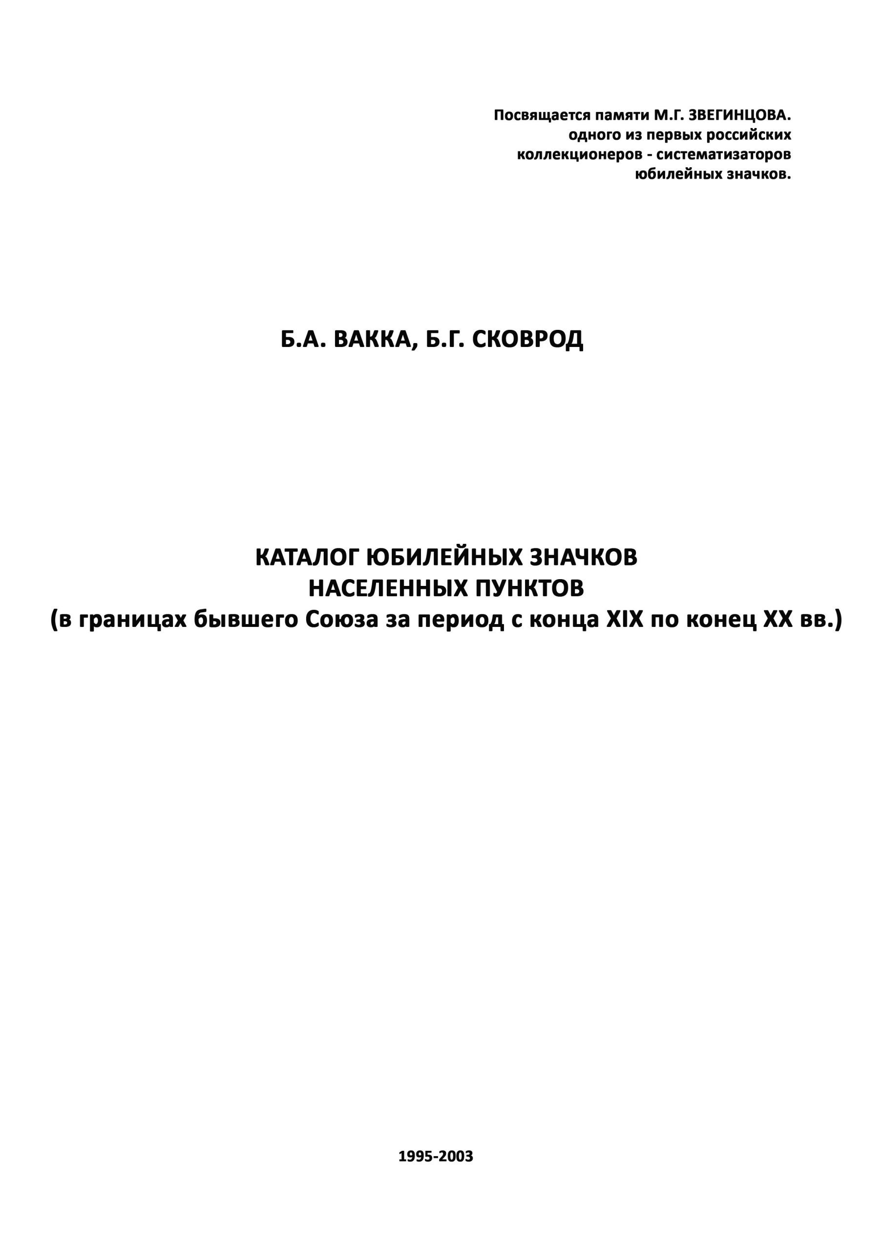 Каталог юбилейных значков населенных пунктов (в границах бывшего Союза за период с конца XIX по конец ХХ вв.).